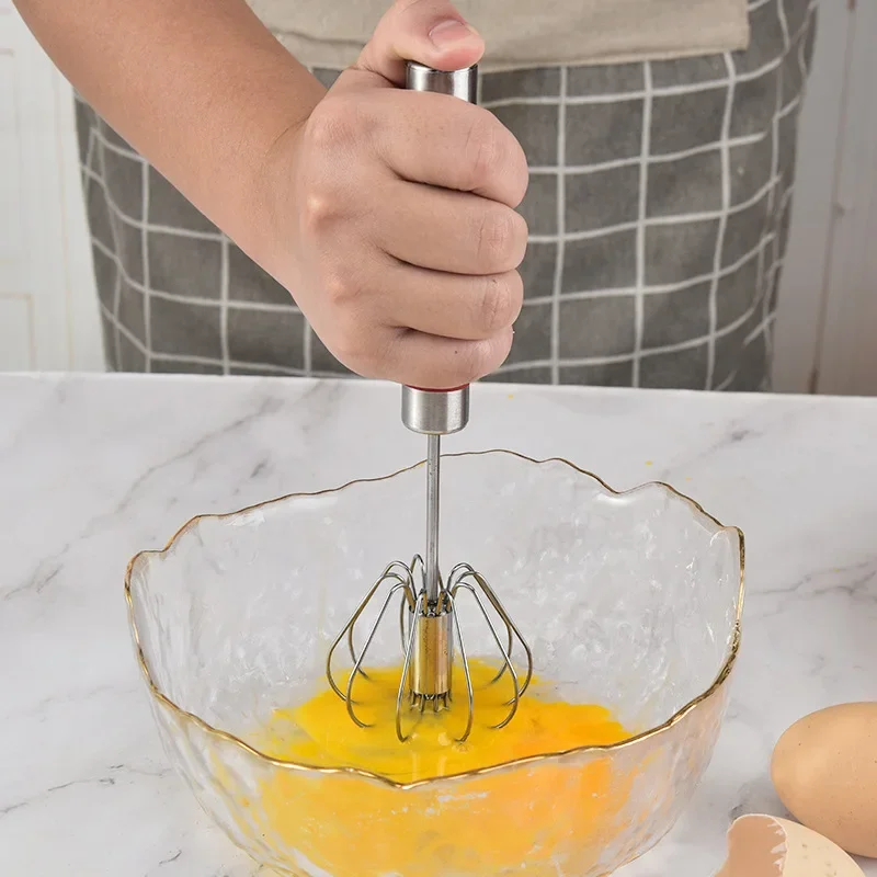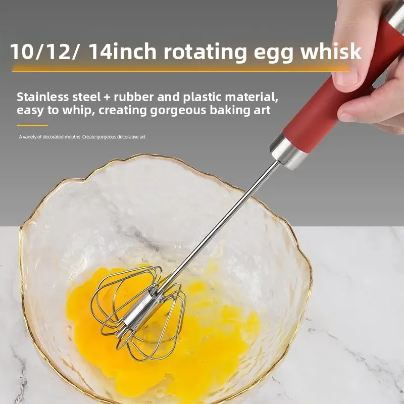 This Stainless Steel Manual Rotating Mixer is a half-automatic egg beater designed for efficient egg stirring and baking tasks. It is available in various colors to suit your kitchen style.