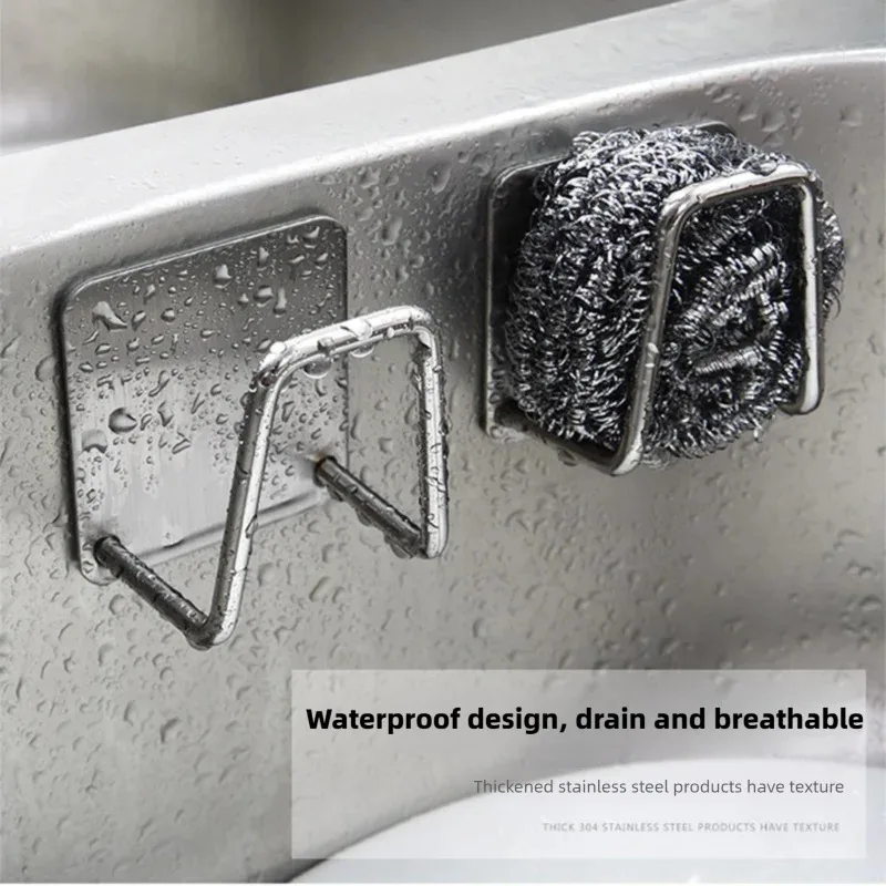 This stainless steel sponge drainage rack is designed to keep your kitchen sink area organized and tidy. It effectively holds steel wire balls and cloths, ensuring they are easily accessible while allowing for proper drainage.