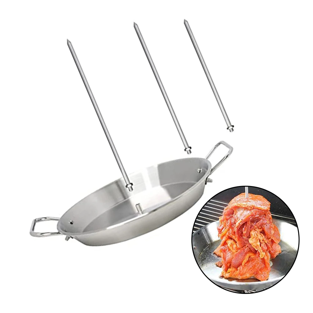 Stainless Steel Vertical Skewer for Grill BBQ Chicken Skewer with 3 Spikes for Rotating Grills and Shawarma Machines