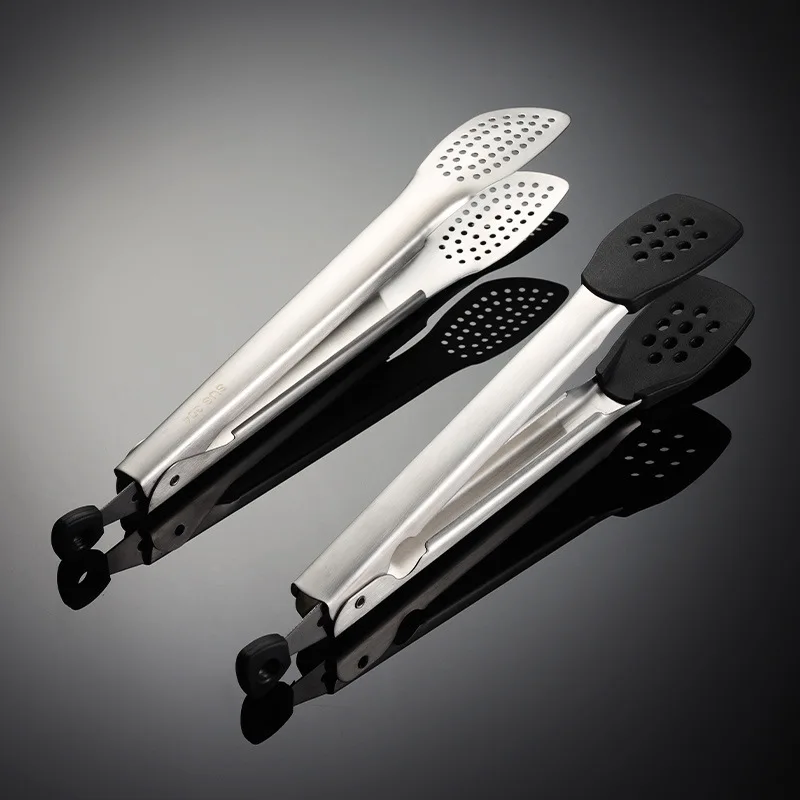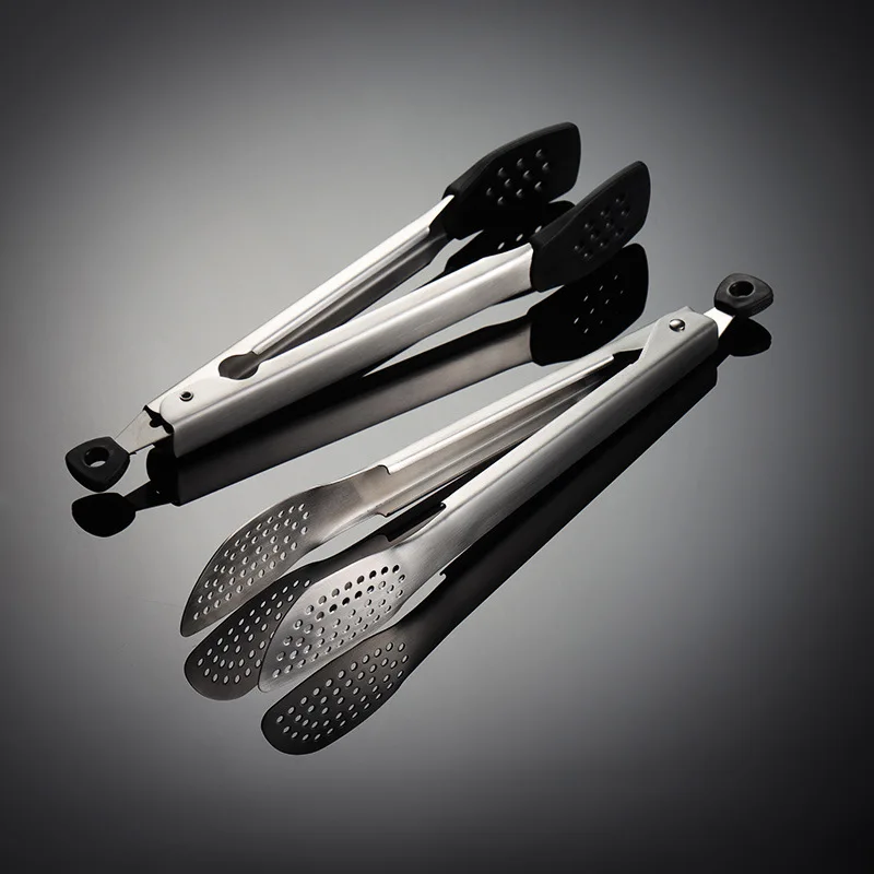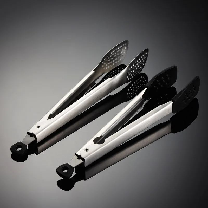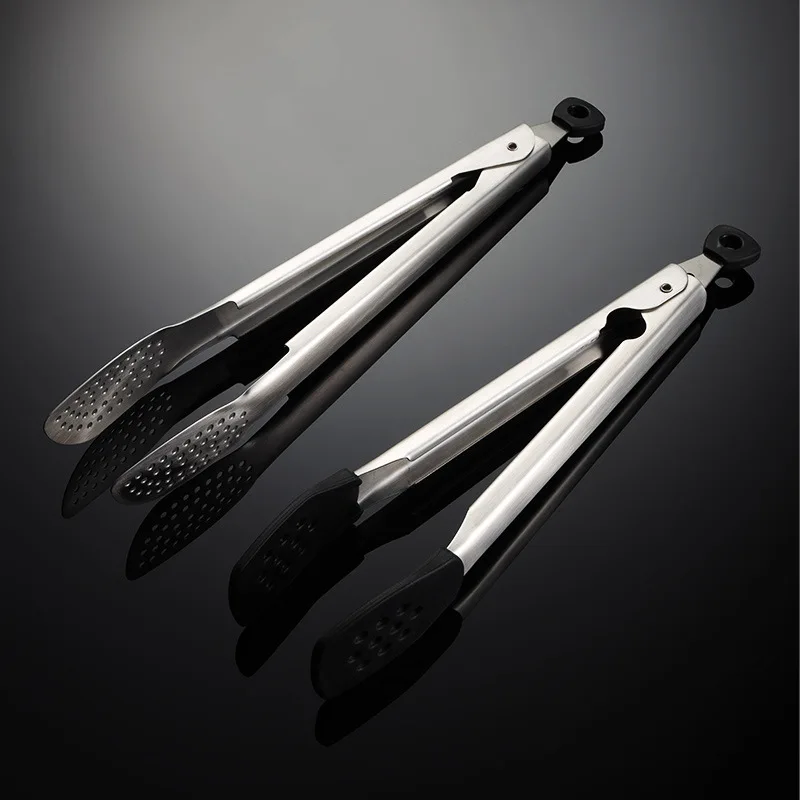 304 Stainless Steel Barbecue Clip Kitchen Tongs with Silicone Tips for Cooking