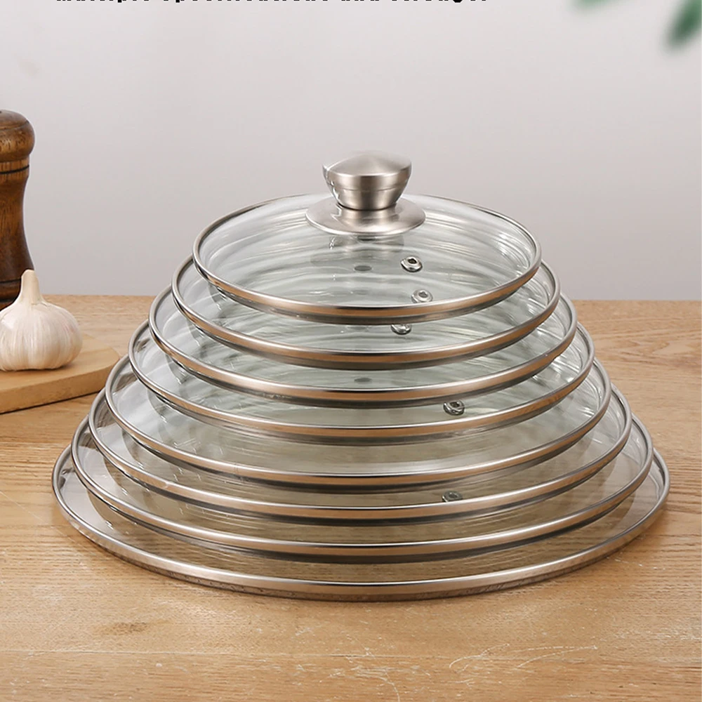 Tempered Glass Pot Lid Stainless Steel Rimmed Chef Cover for Cooking