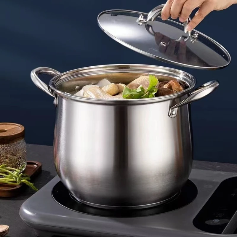 Thickened Stainless Steel Stock Pot Large Capacity Drum Soup Pot Kitchen Utensil