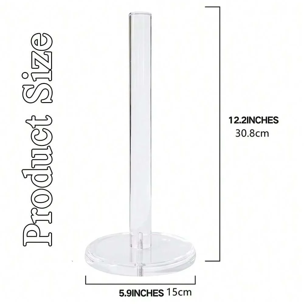 This transparent paper towel holder is a stylish and functional addition to your kitchen or bathroom. Made from durable acrylic, it provides a convenient way to store and access paper towels while keeping your space organized.