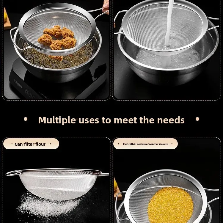 This Ultra-Fine 304 Stainless Steel Fruit Juicer Filter Sieve is designed for efficient straining and draining in the kitchen. Its durable construction ensures long-lasting use while providing excellent filtration for juices and other liquids.