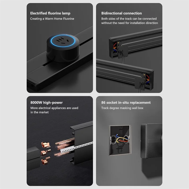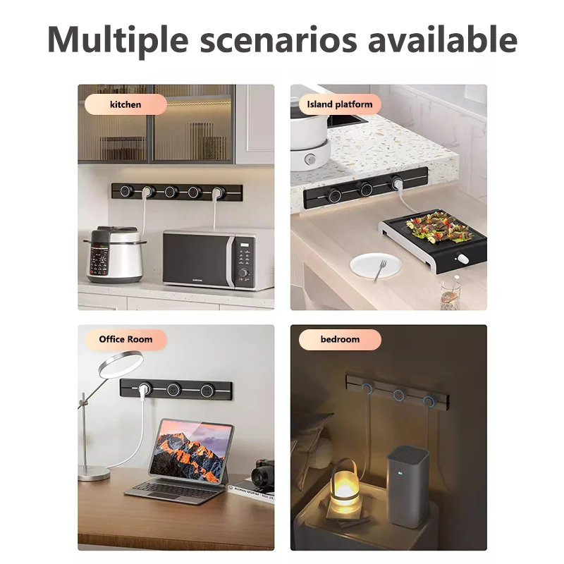 This wall power rail socket is designed for kitchen and general-purpose use, featuring a built-in countertop socket that is both practical and stylish. Available in various lengths, it provides multiple power options for your residential needs.