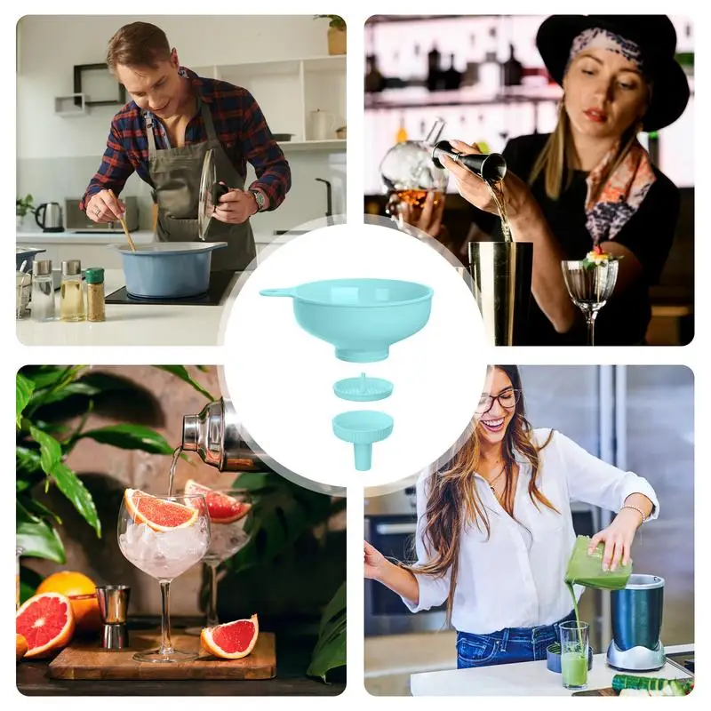 Wide Mouth Kitchen Funnel with Detachable Spouts Strainers for Bottles Sky Blue