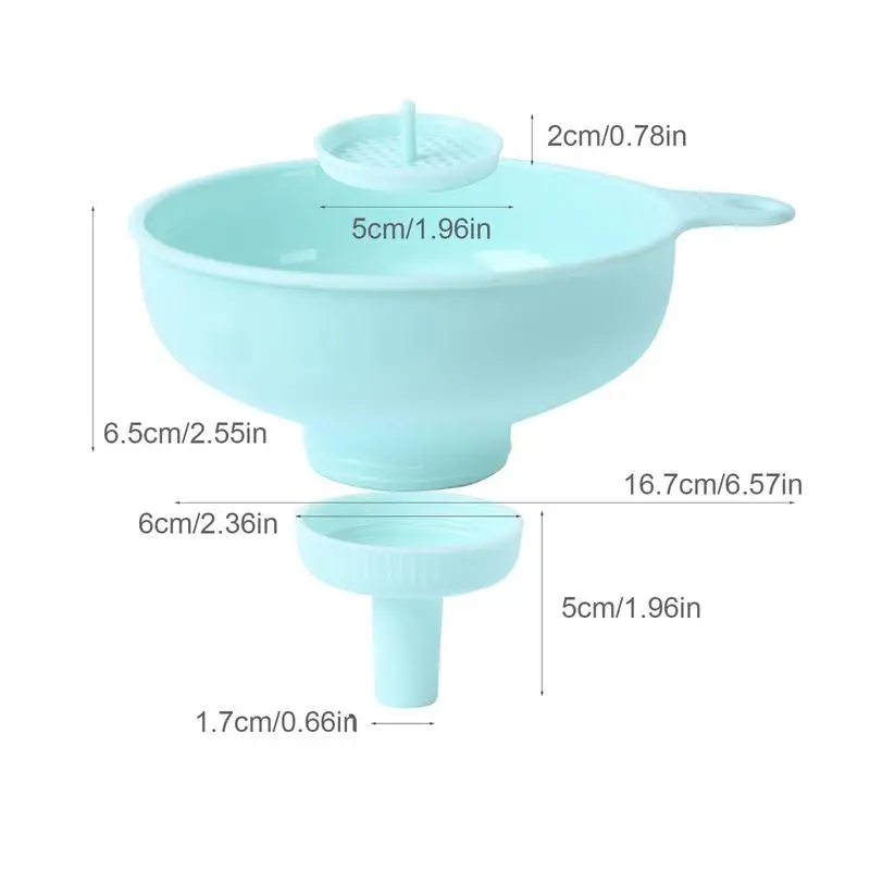 Wide Mouth Kitchen Funnel with Detachable Spouts Strainers for Bottles Sky Blue