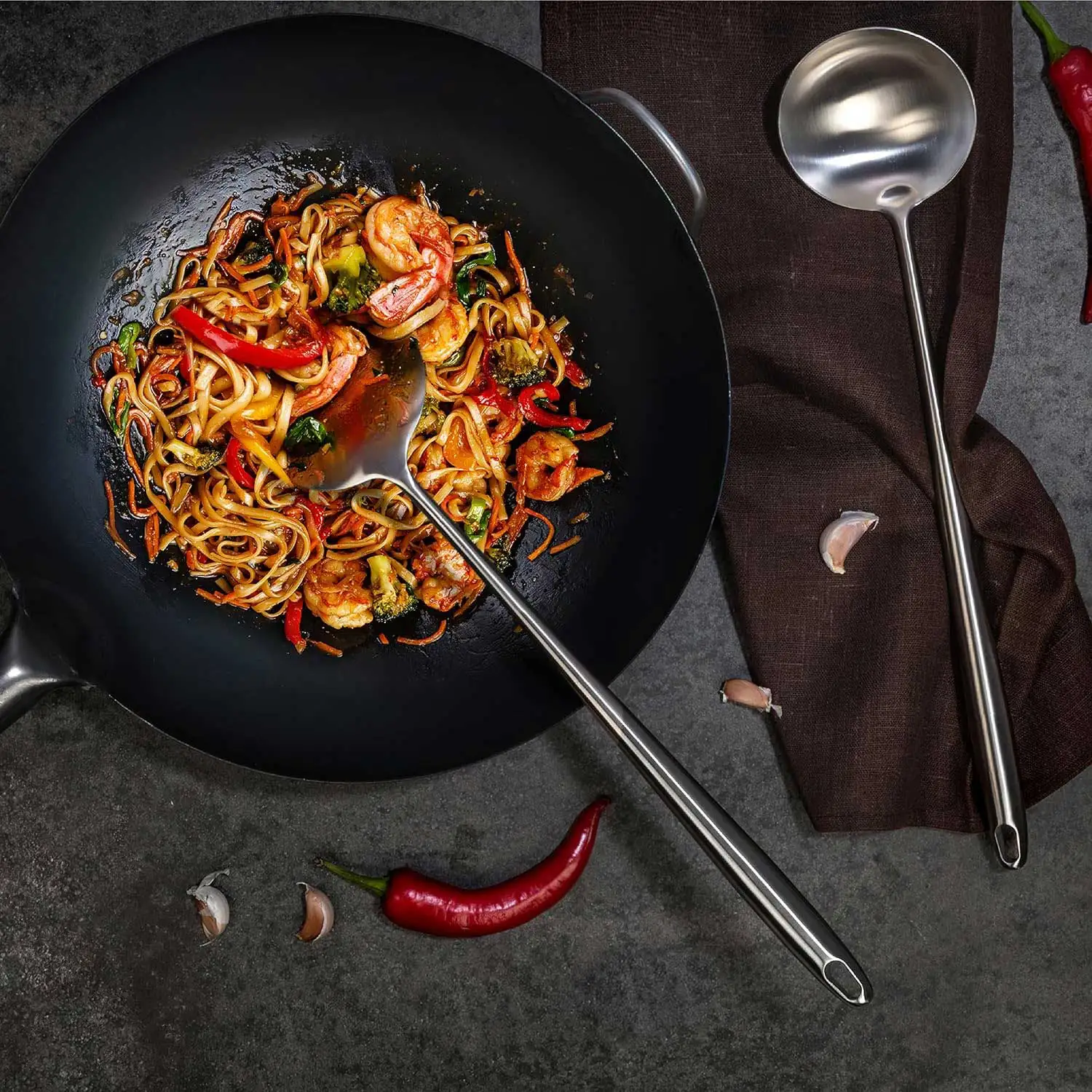 Wok Spatula and Ladle – Set of 2 Heat-Resistant Wok Tools
