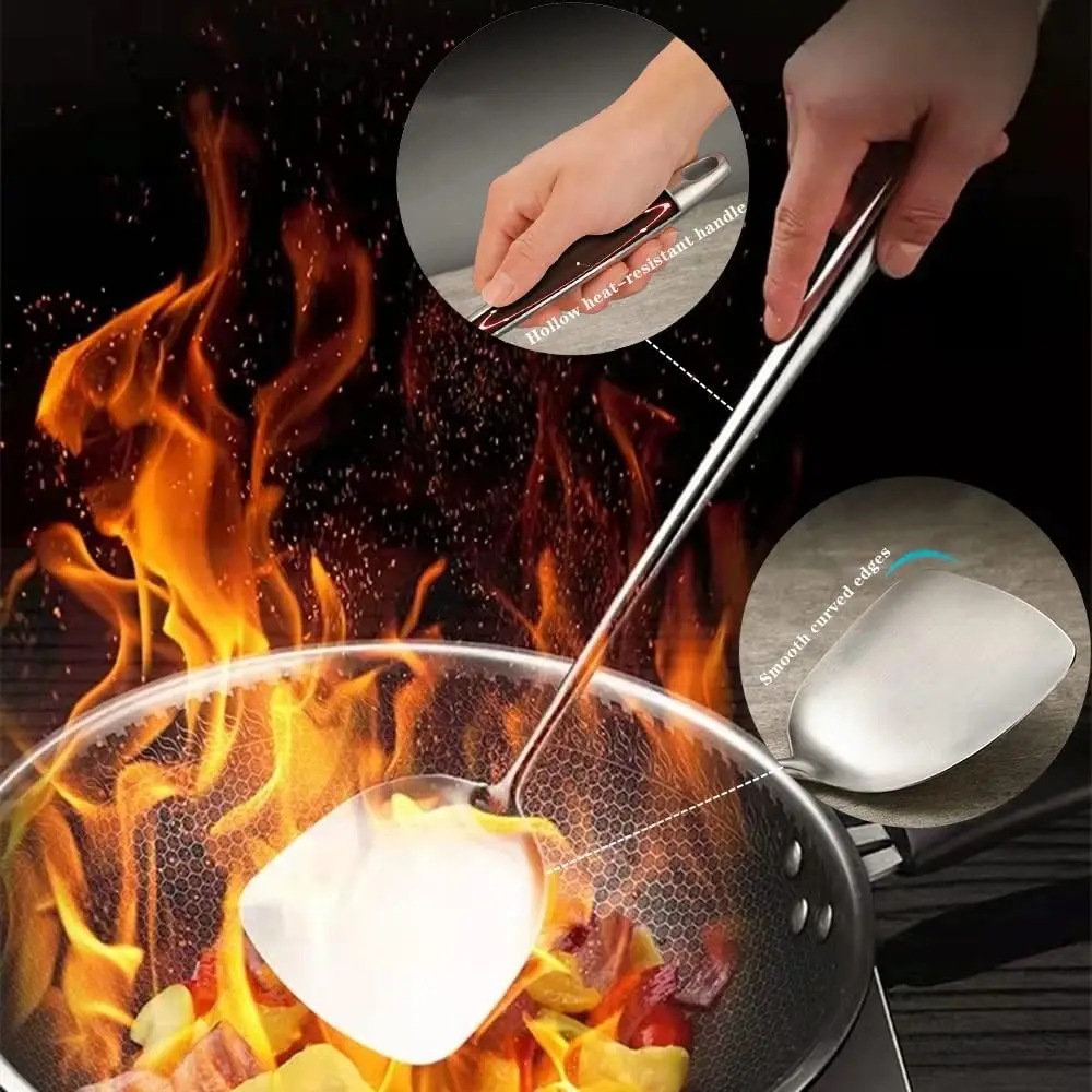 • Versatile tools suitable for flipping meats and vegetables, and adding liquids to dishes.