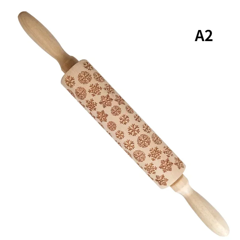 Enhance your holiday baking with this beautifully designed Wood Christmas Printing Rolling Pin. Featuring intricate wooden carvings of festive motifs such as elk and snowflakes, this rolling pin is perfect for creating decorative dough for cookies and pastries.