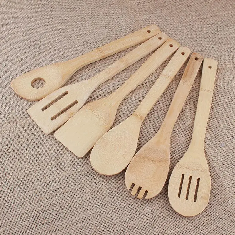 Wooden Cooking Utensil Set Bamboo Kitchen Spatula Spoons Long Handle Tools