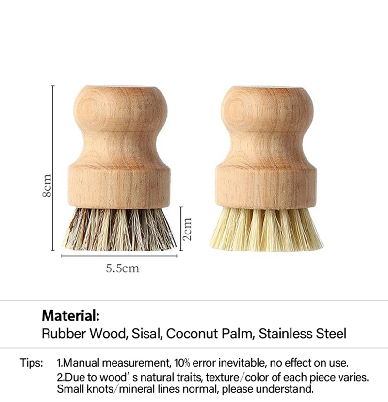 Wooden Dish Brush Natural Sisal Coconut Eco-Friendly Kitchen Cleaning Tool