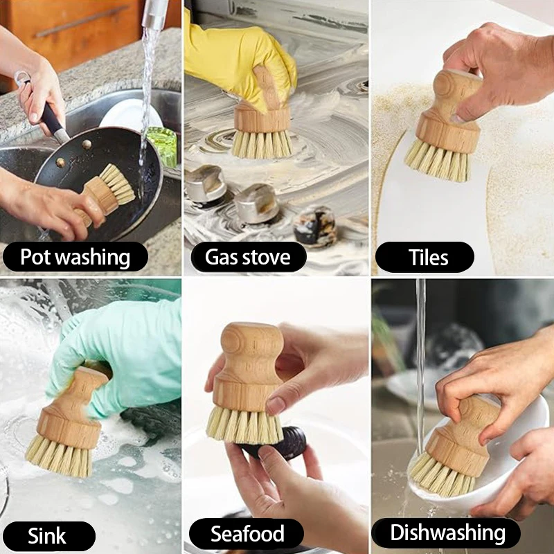Wooden Dish Brush Natural Sisal Coconut Kitchen Cleaning Brush Eco Friendly
