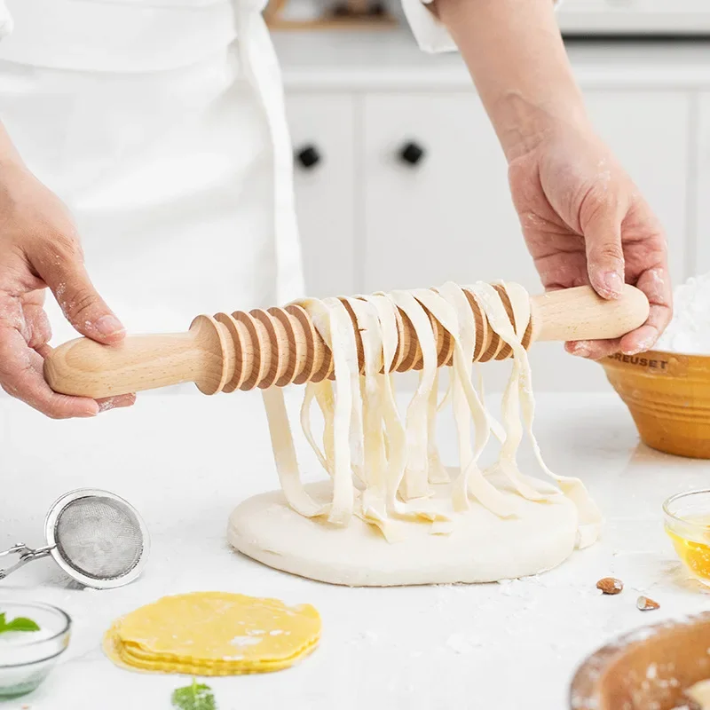 This Wooden Rolling Pin is a versatile kitchen tool designed for baking enthusiasts. With its unique 2-in-1 dough cutter and screw thread design, it simplifies the process of rolling and cutting dough, making it an essential addition to your baking arsenal.