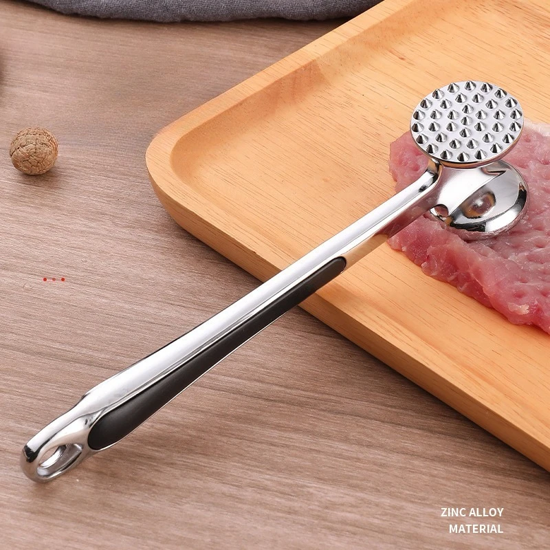 Zinc Alloy Double-Sided Meat Tenderizer Hammer is an essential kitchen tool designed for tenderizing pork chops, steak, and other meats, making it perfect for Western cuisine.